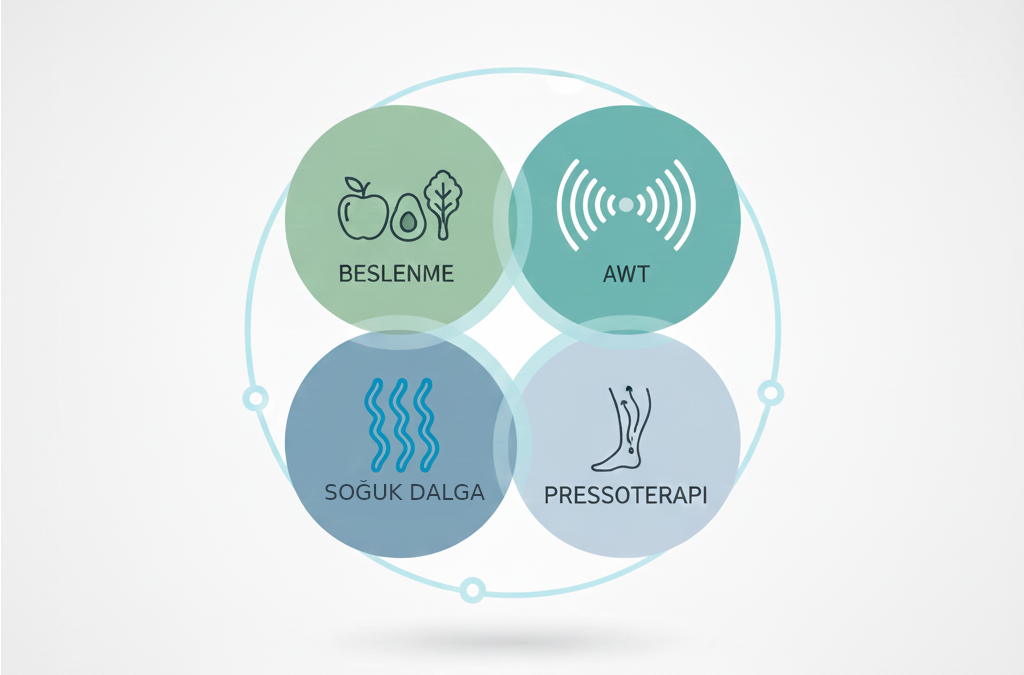 Muayenehanemizde lipödem tedavisini, hastalığın karmaşık doğasını göz önünde bulundurarak bütüncül ve bilimsel temelli bir yaklaşımla ele alıyoruz. Amacımız, sadece semptomları hafifletmek değil, aynı zamanda hastalığın ilerlemesini yavaşlatmak, ağrıyı azaltmak ve hastalarımızın genel yaşam kalitesini önemli ölçüde artırmaktır. Tedavi protokolümüz, doğru beslenme ilkeleriyle başlayıp, üç farklı cihazın sinerjik etkisini kullanan güçlü bir kombinasyonla devam etmektedir.